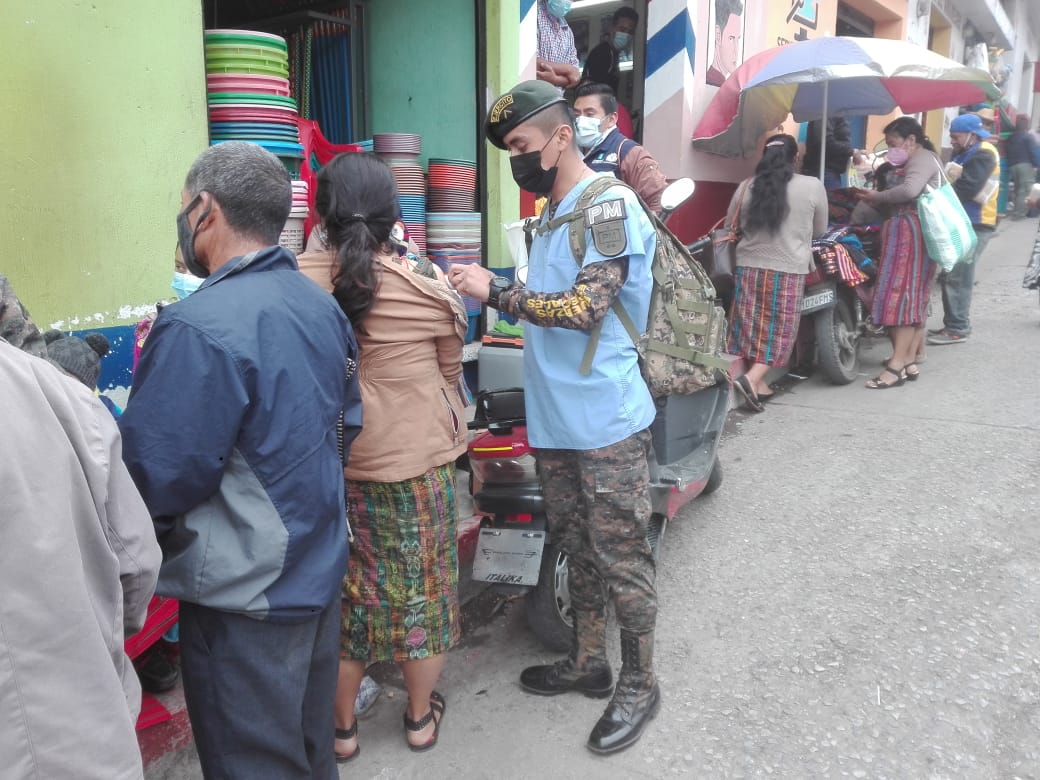 Segunda Brigada de Policía Militar efectuó vacunación móvil en el mercado de San Juan Sacatepéquez