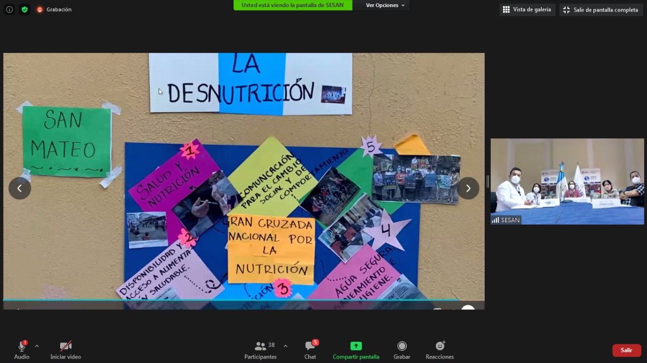 En esta ocasión la Delegación Departamental de la Sesan en Huehuetenango presentó algunas de sus intervenciones, como la entrega del Alimento Complementario Fortificado por parte del Ministerio de Salud Pública y Asistencia Social, con el que se benefició a más de 225 mil niños; priorización, atención y monitoreo de familias en inseguridad alimentaria y nutricional, entre otras.