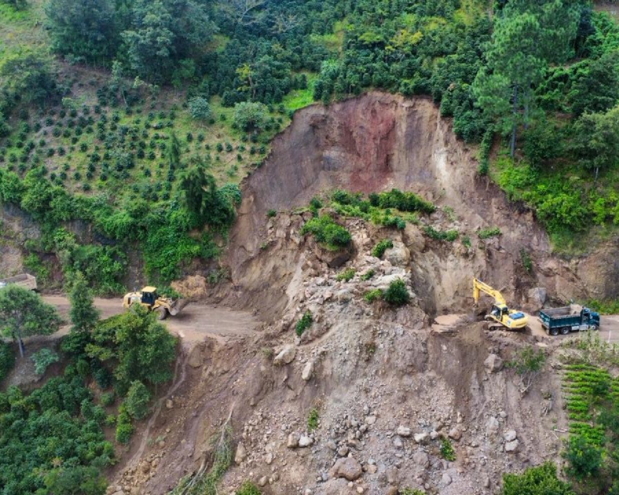 Por segundo día consecutivo, la Unidad Ejecutora Conservación Vial (Covial) continúa trabajando intensamente para despejar el derrumbe que obstruye ambos carriles de la carretera entre Tecpán (Chimaltenango) y Chiché (Quiché), en el tramo conocido como RD-CHM-30.