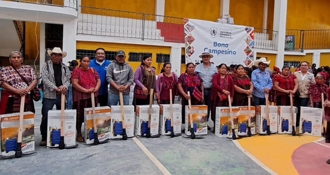 Mientras tanto, en Huehuetenango, el bono llegó a cuatro municipios así: bombas de aspersión, en San Ildefonso Ixtahuacán; en San Juan Ixcoy, además de las bombas de aspersión, se distribuyen piochas y semillas de hortalizas; en Colotenango y en San Gaspar Ixchil, los agricultores reciben bombas, piochas y semilla de hortalizas.