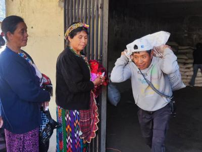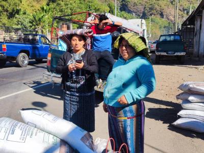 En Zunil, Quetzaltenango, las y los agricultores reciben abono orgánico, esencial para enriquecer el suelo y fomentar una producción más sostenible.