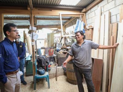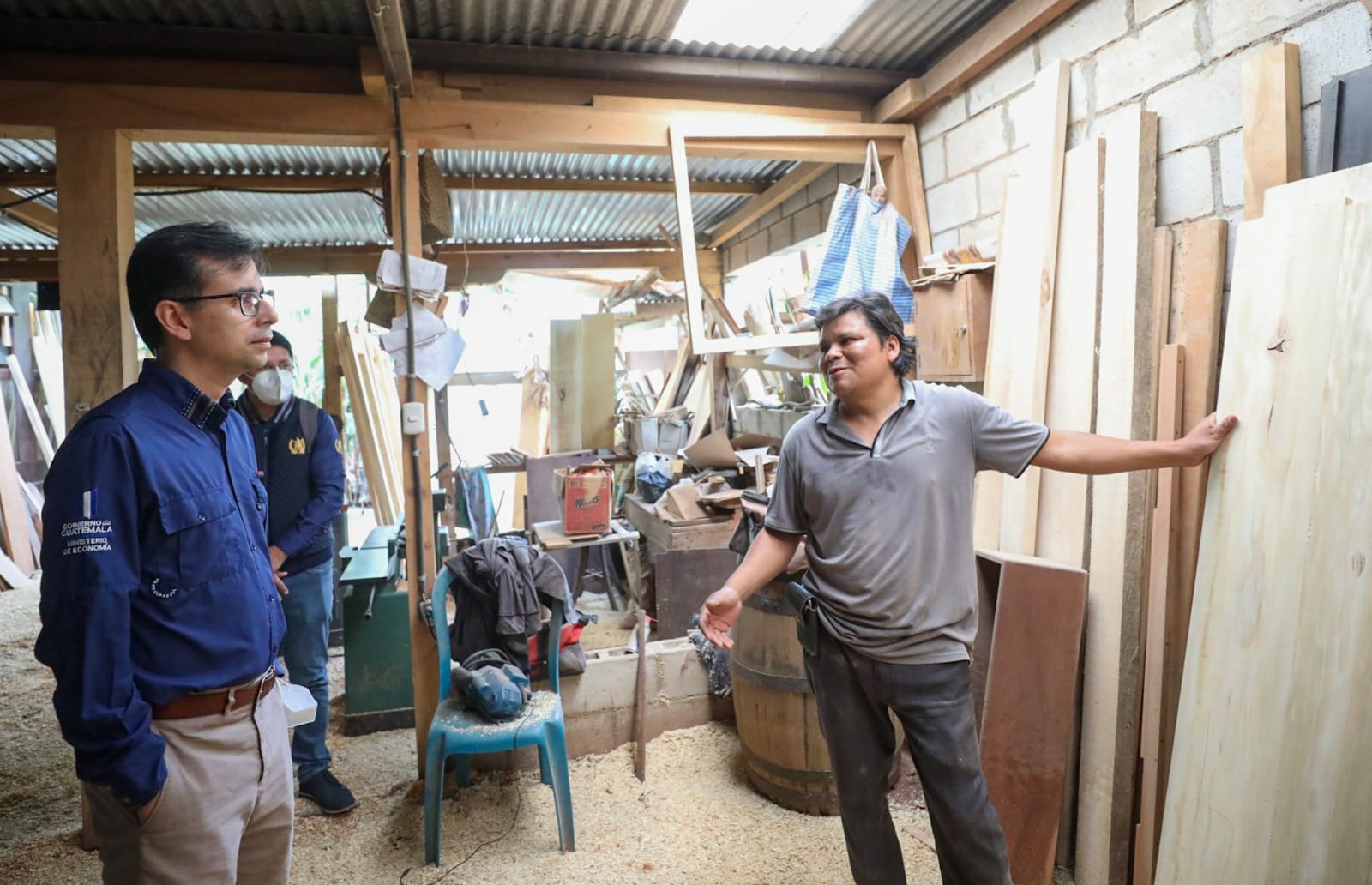 El Viceministro de Desarrollo de la Microempresa, Pequeña y Mediana Empresa, Fernando Escalante en representación del Ministro de Economía, Dr. Janio Rosales, participó este jueves en la visita a las instalaciones de Roberto´s Carpintería y Ebanistería, MIPYME seleccionada para recibir el distintivo Sello Blanco. Este recorrido fue organizado por el Ministerio de Economía (MINECO), el Banco Centroamericano de Integración Económica (BCIE) y el Programa Nacional de Competitividad (Pronacom).