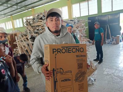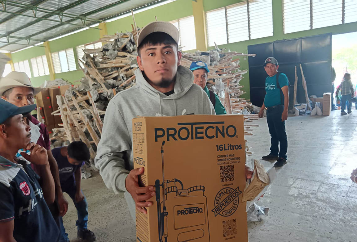 Se les otorgan una bomba de aspersión, semillas de hortalizas como acelga, cilantro, cebolla blanca, güicoy y pepino, así como semillas tradicionales de amaranto y chipilín. También abono orgánico y herramientas básicas que facilitan el trabajo en el huerto.