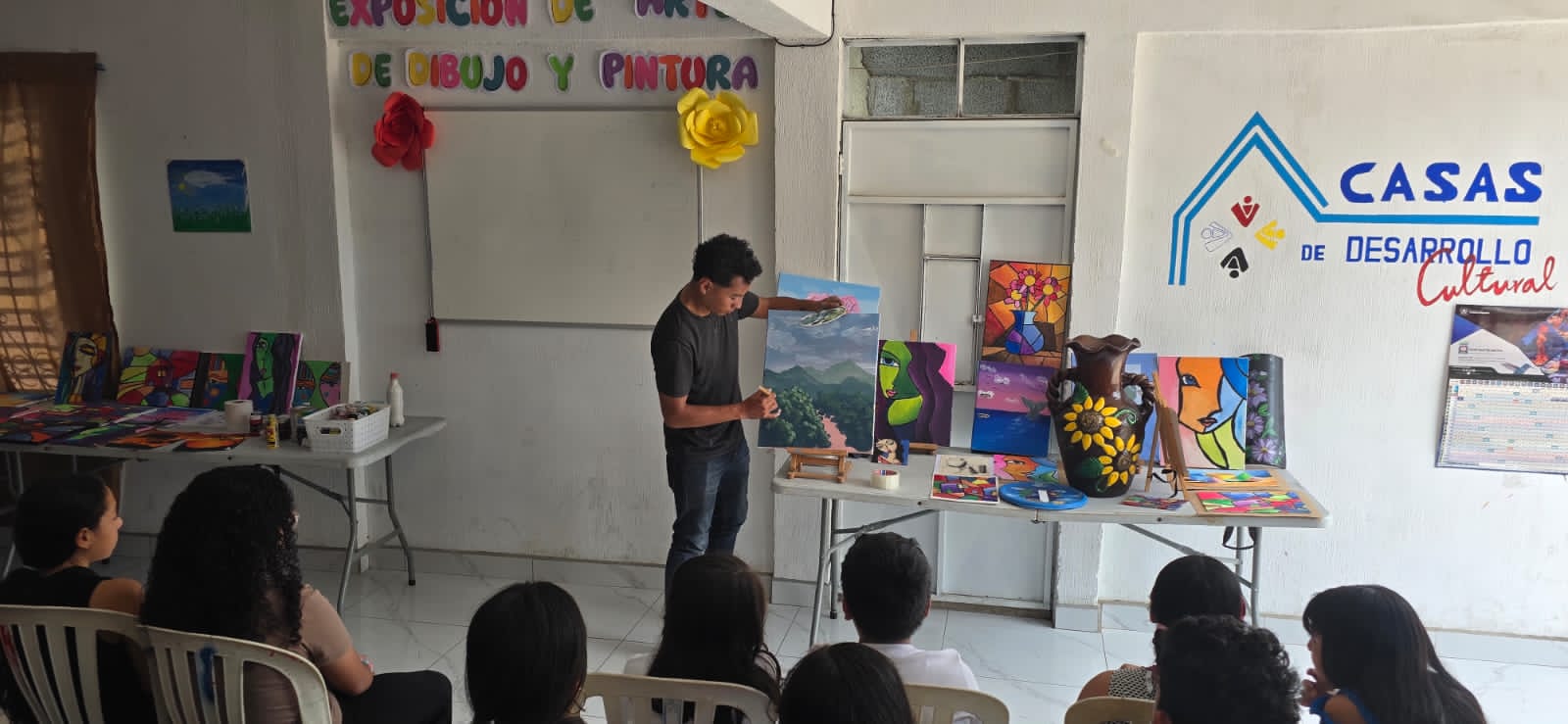 Durante el evento, el artista plástico Gerardo Rivas ofreció una demostración magistral de pintura, enriqueciendo los conocimientos pictóricos de los asistentes.
