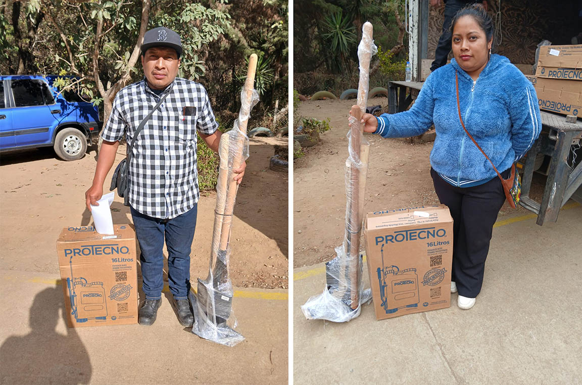 Las familias beneficiadas recibieron semillas de hortalizas y semillas nativas, así como herramientas agrícolas y bombas de aspersión, insumos que les permitirán iniciar o fortalecer la producción de alimentos en sus propios patios y parcelas.