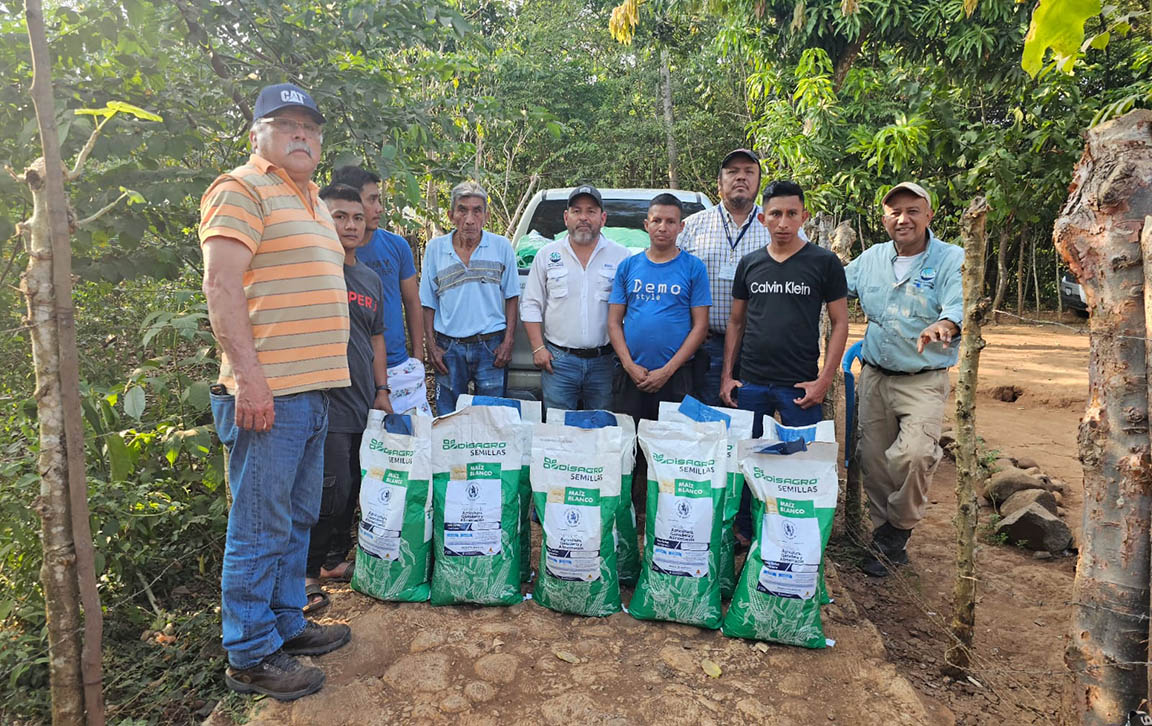 También en Nuevo San Carlos, Retalhuleu, se entregaron bolsas de semillas certificadas de maíz de alto rendimiento para optimizar los cultivos y cosechas.