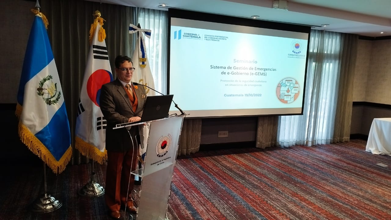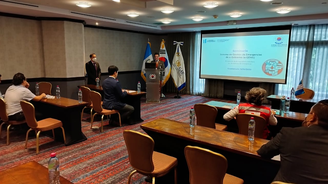 Para dar cumplimiento a la alianza entre La Embajada de Corea en Guatemala y La Comisión Presidencial de Gobierno Abierto y Electrónico – GAE – firmada en mayo del presente año, La GAE impartió su 5to seminario “Sistema de Gestión de Emergencias de e-Gobierno (e-GEMS)”