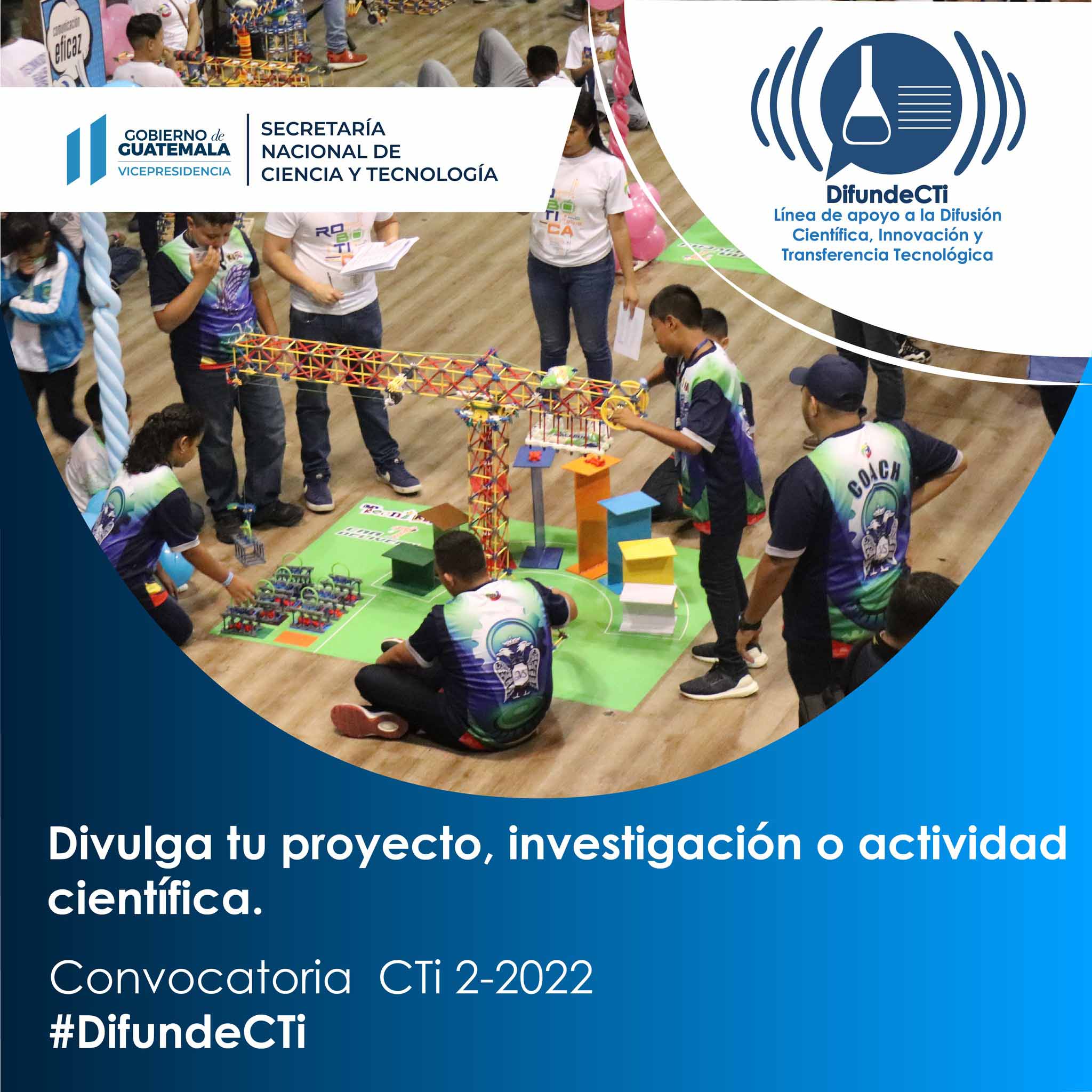La Convocatoria CTi 2-2022, del programa Comunica CTi, en su línea de financiamiento Difunde CTi, tiene como objetivo dar apoyo económico a eventos científicos, tecnológicos o de innovación tecnológica, como congresos, foros, seminarios, talleres, capacitaciones, entrenamientos, certificaciones, ferias y actividades de sensibilización, formación o promoción, entre otros. Estos pueden ser en modalidad física o virtuales.