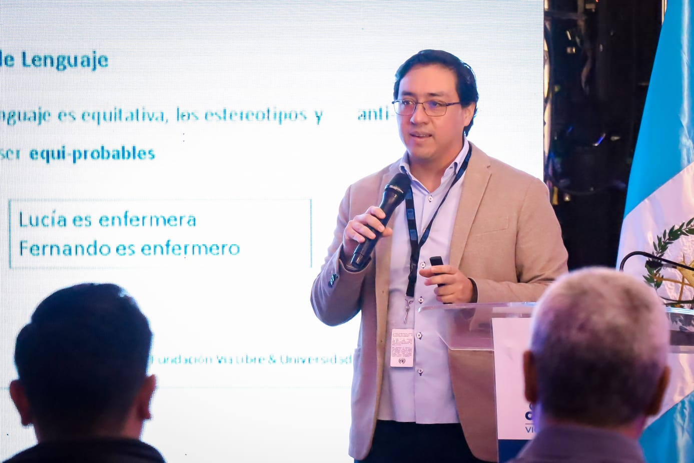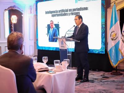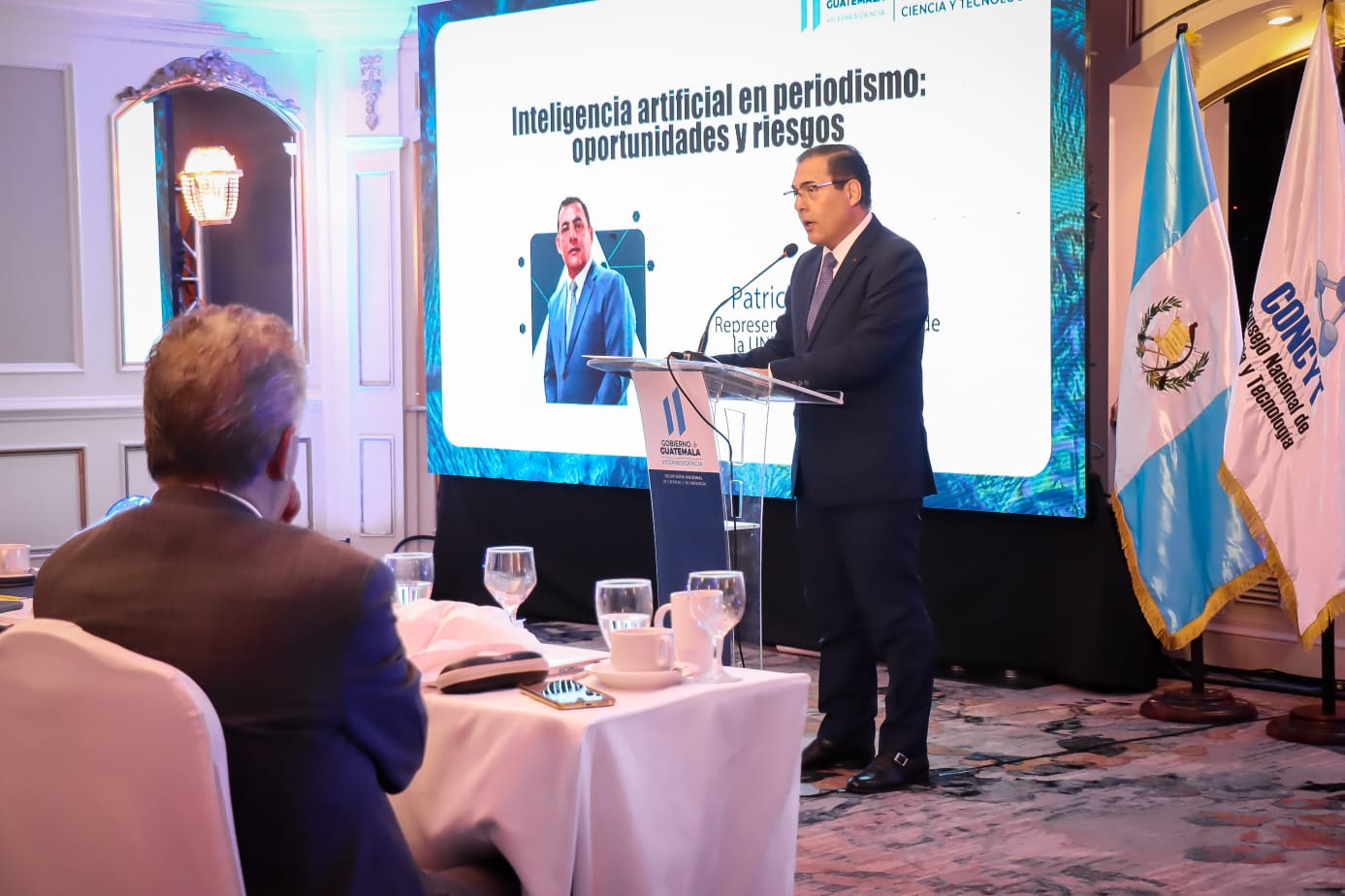 La utilización de las tecnologías digitales y la inteligencia artificial (IA) para la generación de textos e información requiere de una especial atención por los sesgos que trae consigo los algoritmos, así como la necesaria corroboración de datos este fue un punto de coincidencia entre Carlos Mazariegos del Laboratorio de Aceleración de PNUD y Patricio Zambrano, representante de la Oficina de UNESCO en Guatemala.