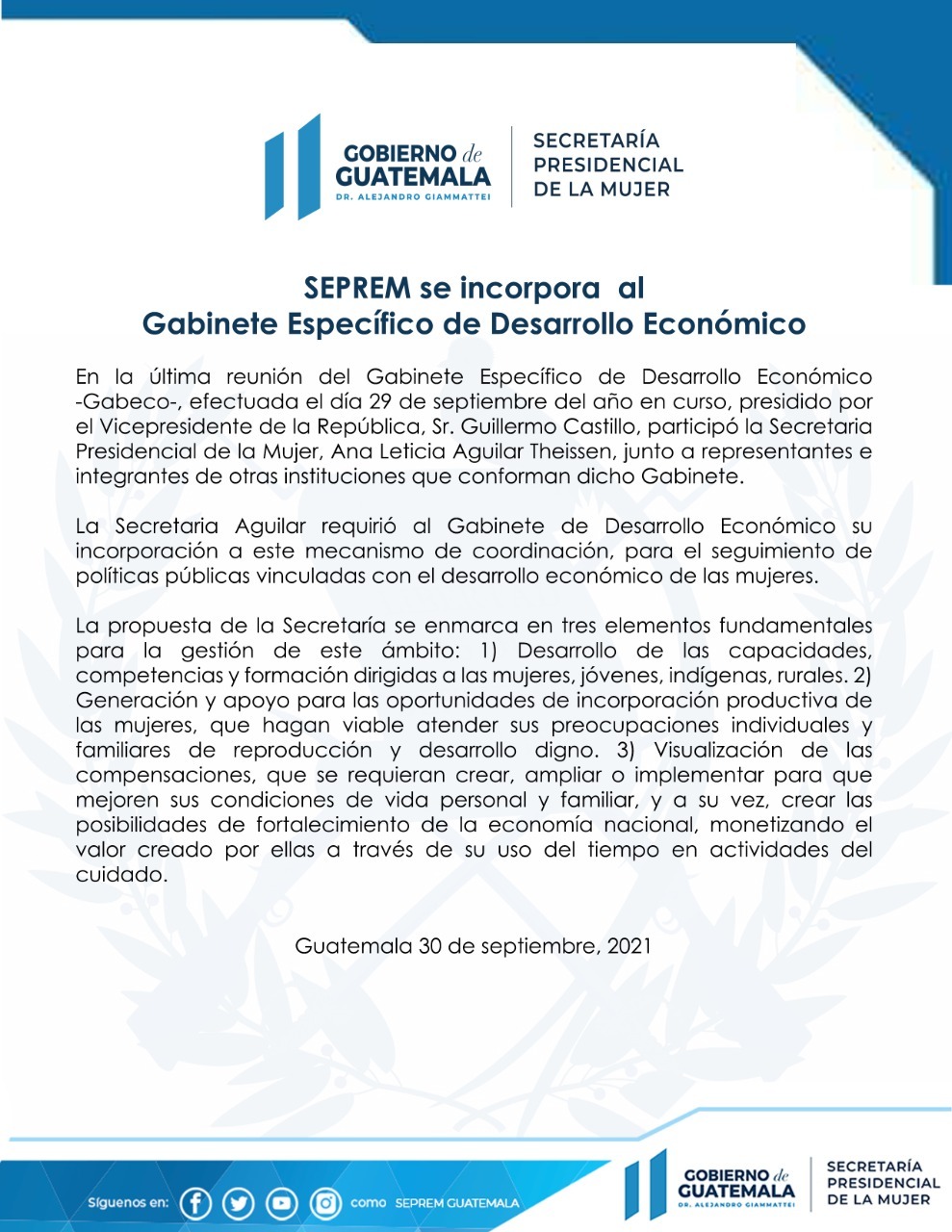 Secretaría Presidencial de la Mujer -SEPREM-