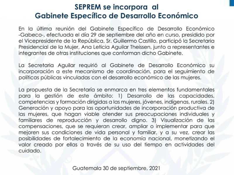 Seprem se Incorpora al Gabinete Específico de Desarrollo Económico