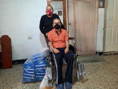 Una niña originaria de San Pedro Ayampuc y un adulto mayor de la capital, fueron beneficiados por SOSEP con la entrega de una silla de ruedas y pañales.