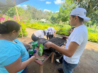 En la parte práctica, los participantes pudieron colocar semillas en aboneras, conocer aspectos para enriquecer la tierra, tipos de abono y cultivos, entre otras actividades.