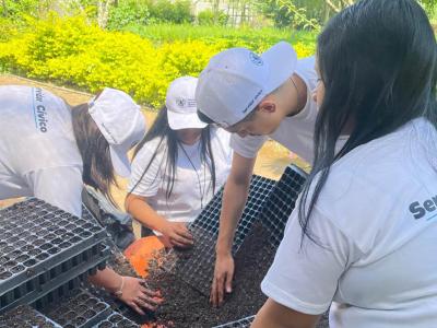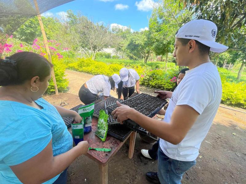 Durante la jornada formativa, el grupo juvenil aprendió acerca de la producción de alimentos, implementación de aboneras, construcción de invernaderos y elaboración de bandejas de pilones.
