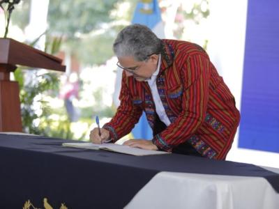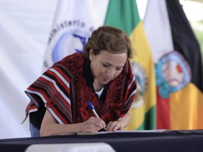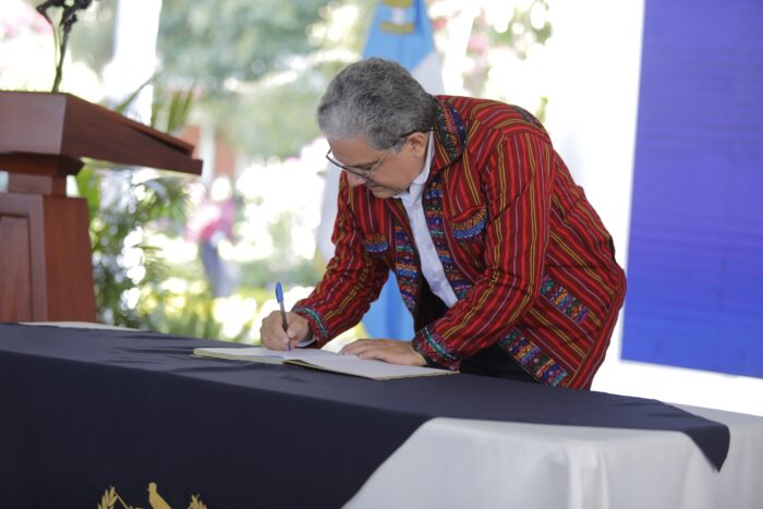 Como parte del proceso, el Presidente Bernardo Arévalo, la titular de SESAN, Mireya Palmieri, y los ministros de Salud Pública y Asistencia Social, Óscar Cordón, y de Desarrollo Social, Abelardo Pinto, así como las autoridades ancestrales presentes, firmaron el convenio para la ejecución del Pacto de Salud.