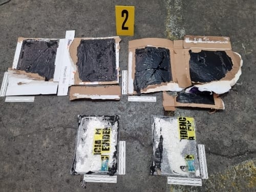 Las autoridades informaron que el 21 de febrero fueron inspeccionadas dos cajas que en su interior encontraron dos bolsas transparentes que contenían 0.228 kilogramos de cocaína, con un avalúo de Q23 mil 425.11.