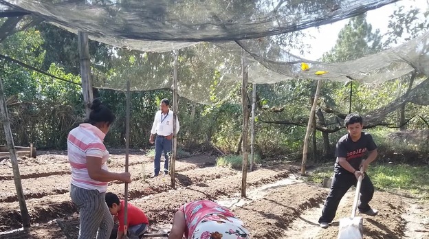En esta iniciativa participan 15 familias, integradas por siete hombres y ocho mujeres, quienes realizaron labores conjuntas de limpieza del terreno y preparación de tablones para establecer un área productiva de aproximadamente 49 metros cuadrados.