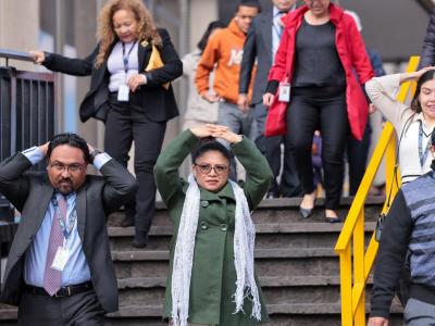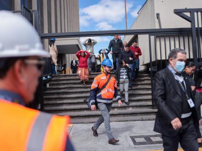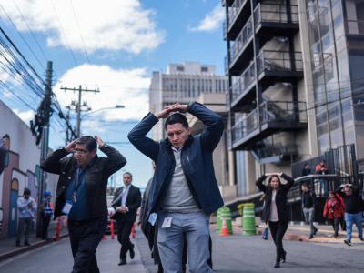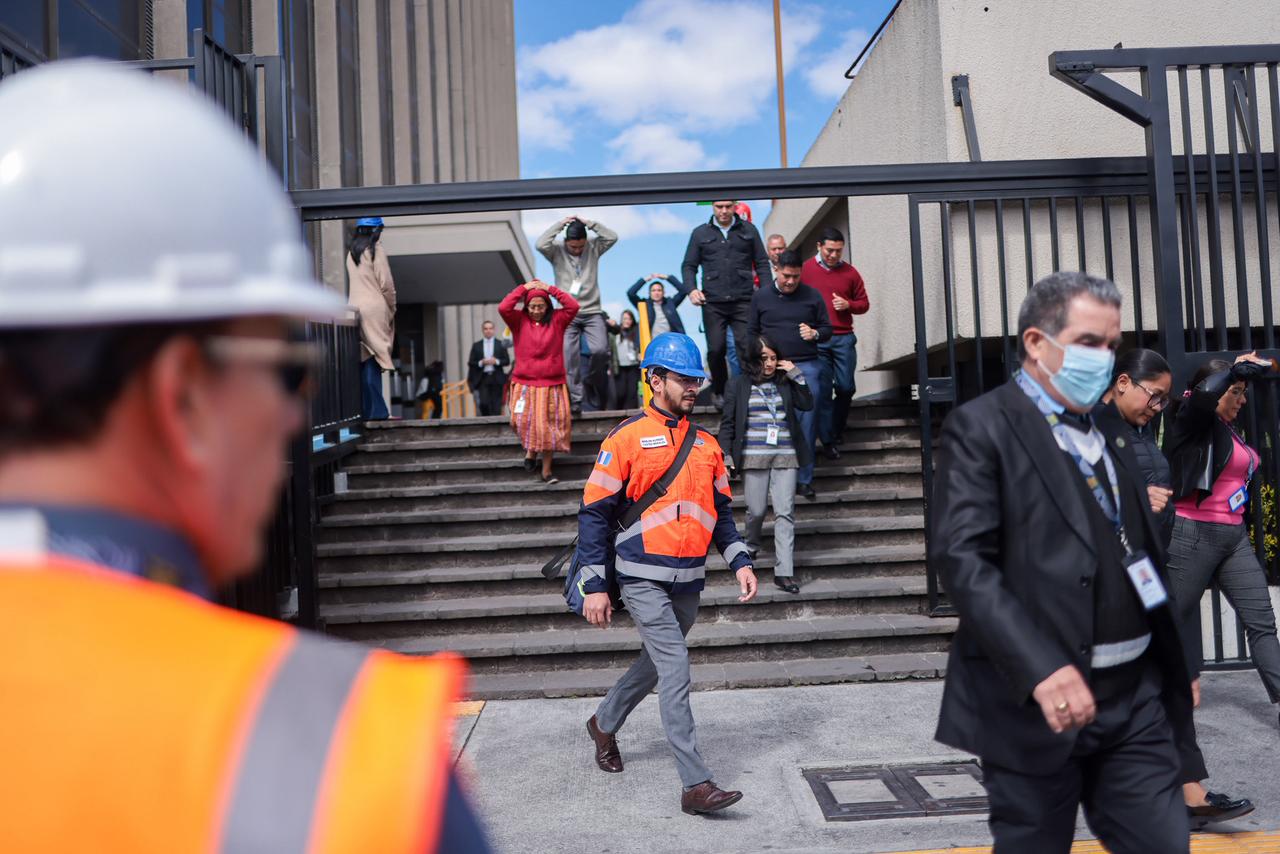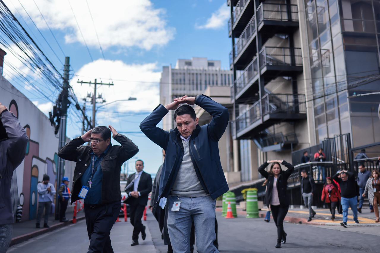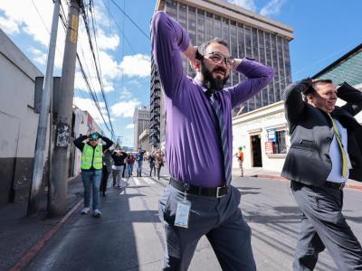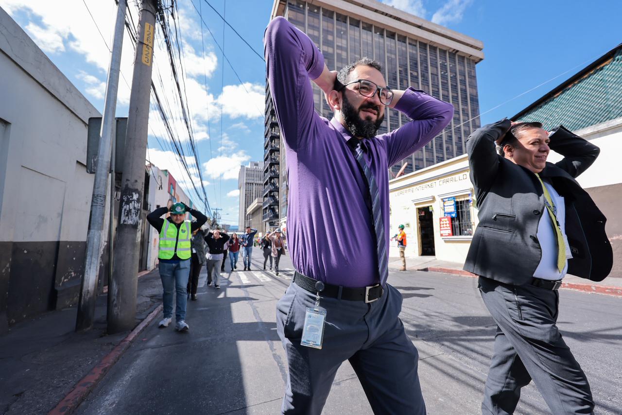 Este 24 de febrero de 2026, a las 10:00 a.m., las alertas sísmicas activaron la respuesta de emergencia en el Ministerio de Finanzas Públicas. Inmediatamente, el personal puso en práctica los protocolos de evacuación, participando de manera ordenada el edificio de 18 niveles.