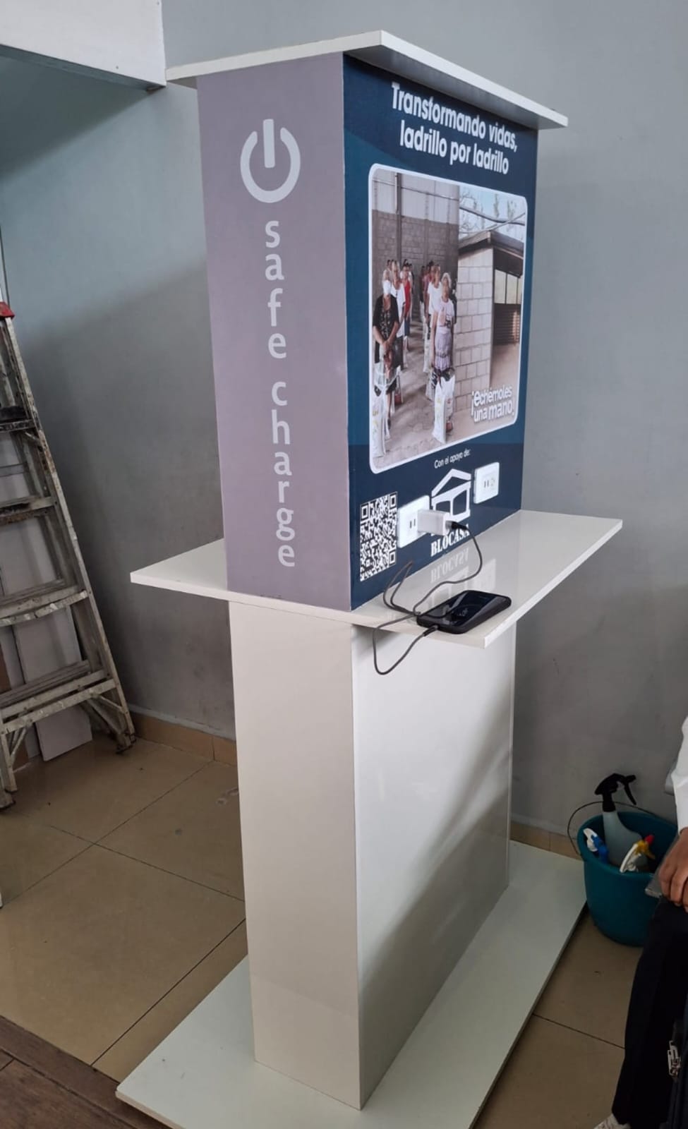 El proyecto consiste en puntos de carga para dispositivos móviles instalados dentro de la terminal aérea. Cada aporte voluntario que realizan los usuarios se convierte en fondos destinados a mejorar las condiciones de vida de familias de escasos recursos, principalmente mediante la construcción o mejora de viviendas para que más niños crezcan bajo un techo digno. El proyecto se empezó a andar en 2023 y desde entonces se han construido seis casas, beneficiando el mismo número de personas.