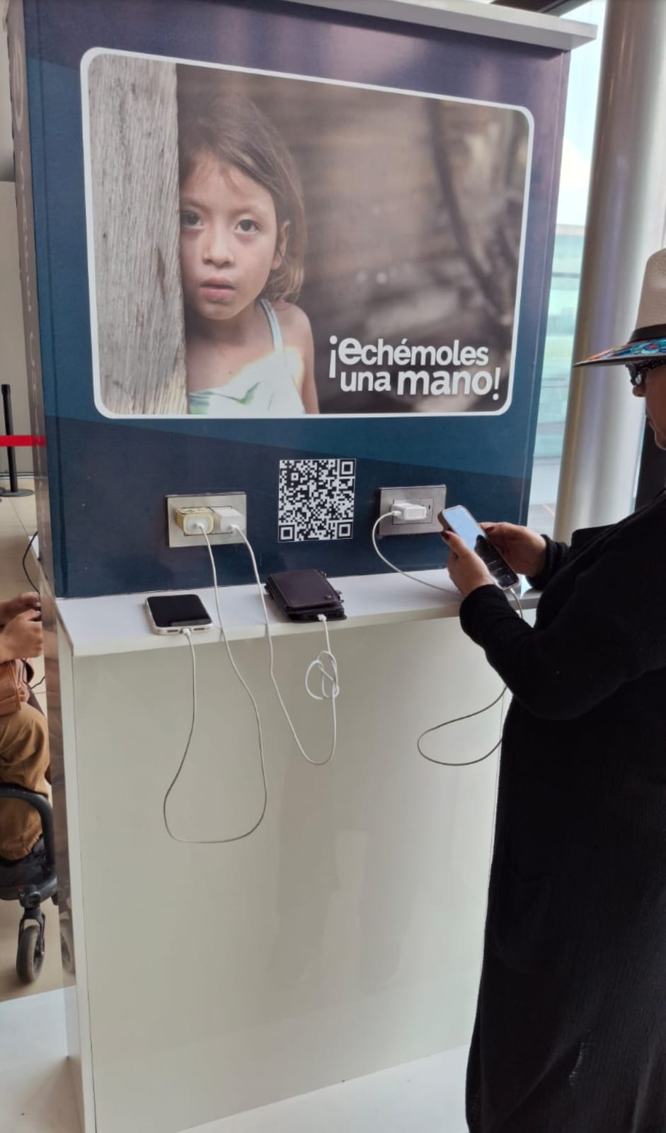 Los pasajeros que transitan por el Aeropuerto Internacional La Aurora (AILA) ahora pueden recargar su celular en estaciones especiales del proyecto “Echémoles la mano”, una iniciativa que une al sector privado y público para apoyar a familias guatemaltecas en situación de vulnerabilidad.