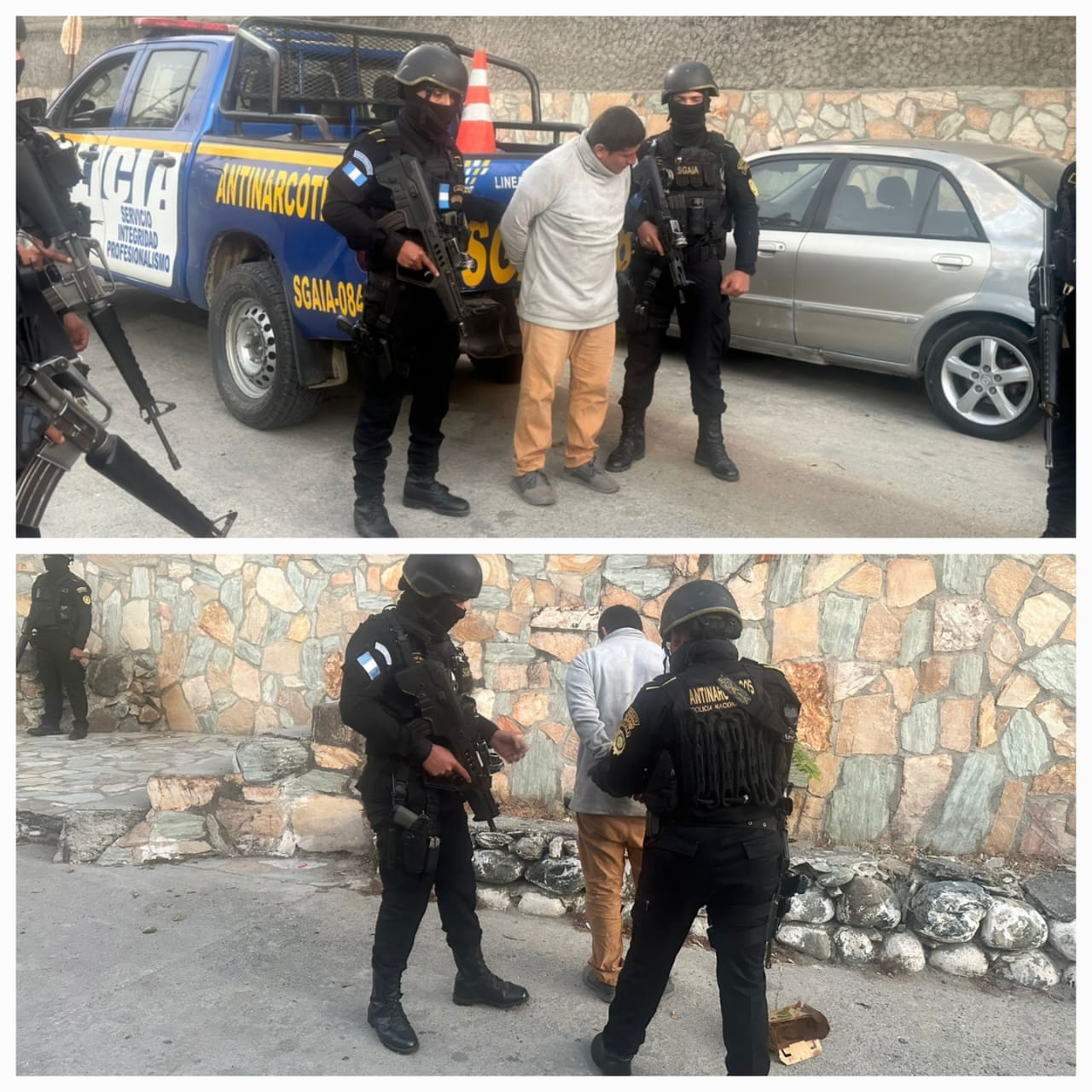 Esta mañana, personal de la Subdirección General de Análisis de Información Antinarcótica (SGAIA) de la Policía Nacional Civil (PNC) detuvo a una persona con orden judicial pendiente por delitos de falso testimonio y obstaculización a la acción penal. El hecho ocurrió en el barrio Aguahiel frente al Estadio Municipal de San Agustín Acasaguastlán, El Progreso.