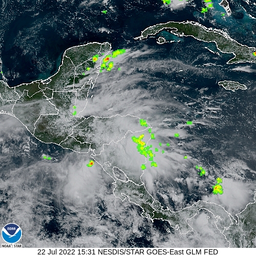 Las lluvias con actividad eléctrica podrían presentarse, especialmente, sobre las regiones del Sur al Centro del país durante las tardes y noches del sábado 23 y domingo 24 de julio de 2022, agregó el INSIVUMEH, ente científico del Sistema de la Coordinadora Nacional para la Reducción de Desastres -CONRED-.