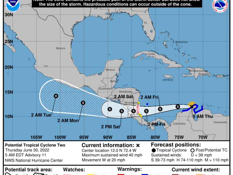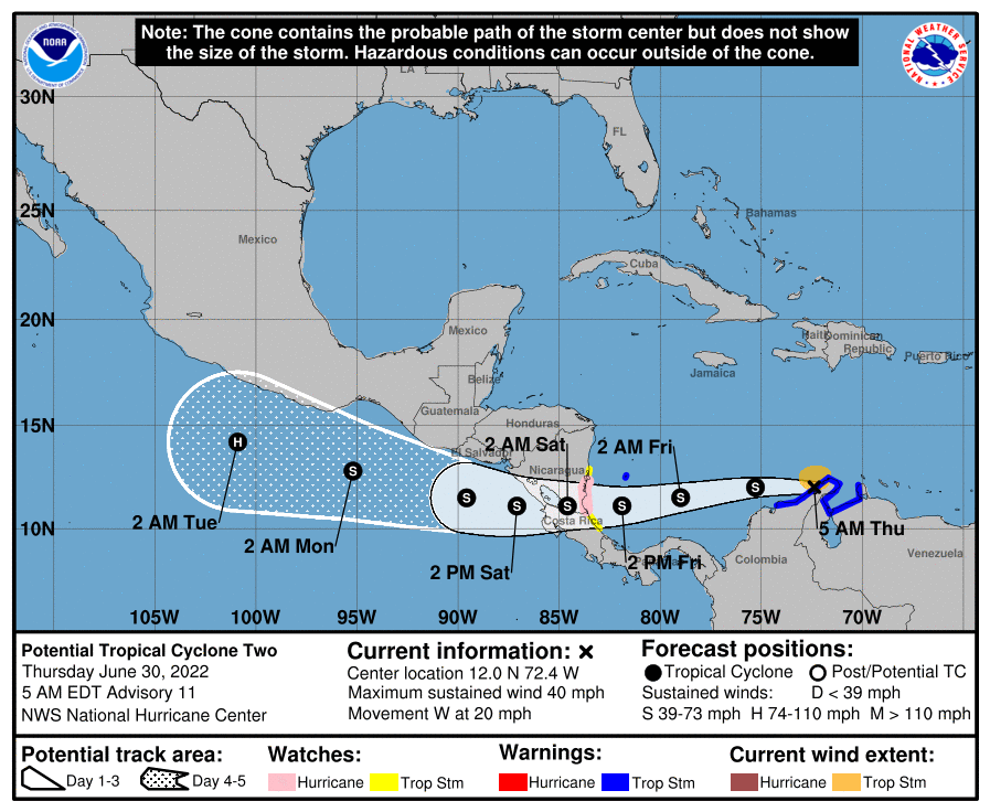 De acuerdo con el Boletín Meteorológico Informativo No. 023-2022, emitido por el Instituto Nacional de Sismología, Vulcanología, Meteorología e Hidrología -INSIVUMEH- a las 6:30 horas del jueves 30 de junio de 2022, se mantiene el monitoreo a un Sistema de Baja Presión ubicado al norte de Colombia.