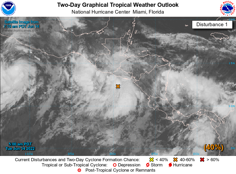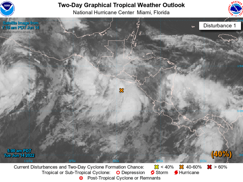 De acuerdo con la Cápsula Informativa No. 20-2022, emitida por el Instituto Nacional de Sismología, Vulcanología, Meteorología e Hidrología -INSIVUMEH- la mañana del martes 14 de junio de 2022, un Sistema de Baja Presión se ubica cerca de las costas de El Salvador.