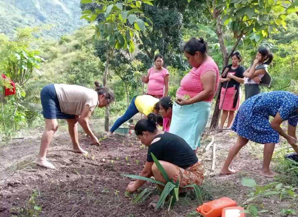 Se entregaron pilones de hortalizas, entre ellas: cebolla, chile jalapeño, berenjena, acelga, cilantro y lechuga, para fortalecer la producción del huerto, que está integrado por 14 agricultoras.