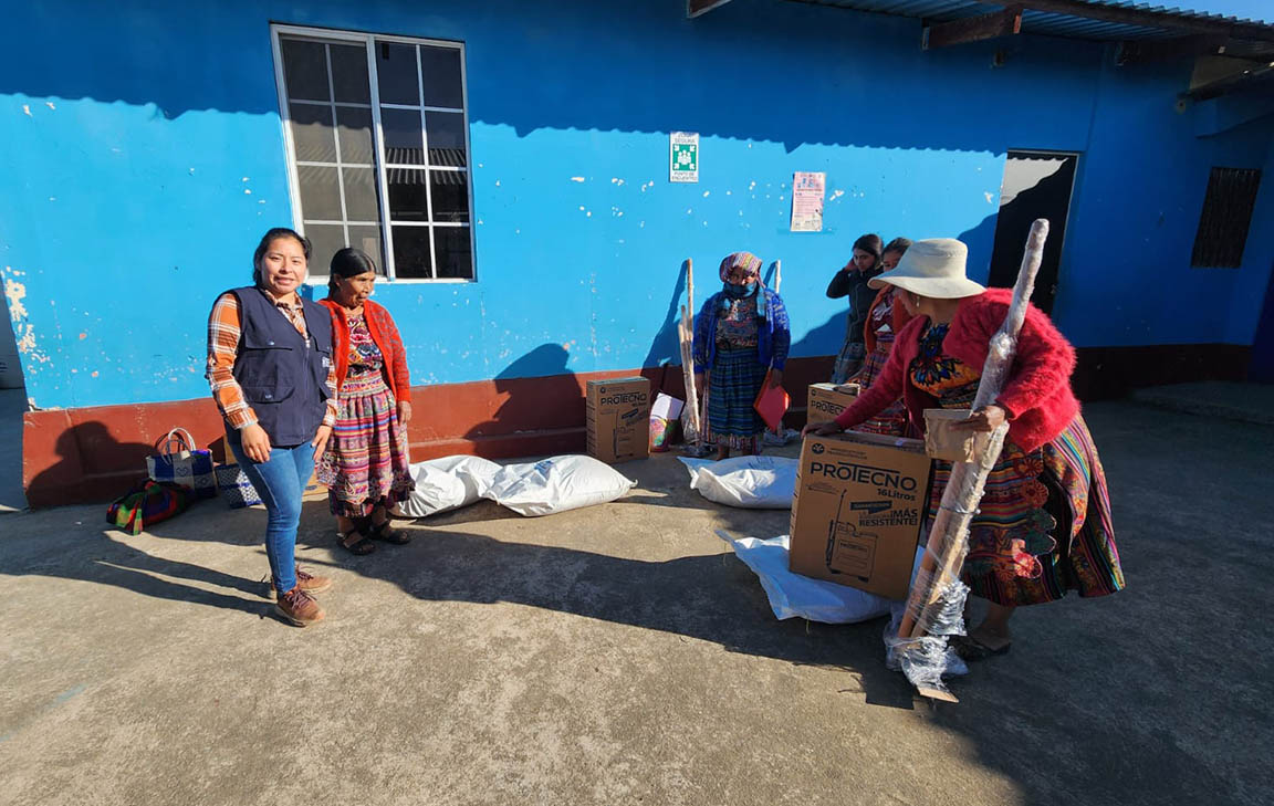El kit incluye semillas de hortalizas y semillas nativas como cilantro y chipilín, herramientas de trabajo agrícola, bomba de aspersión y abono orgánico, insumos que facilitan la preparación del suelo, la siembra y el manejo de los cultivos, promoviendo una producción sostenible.