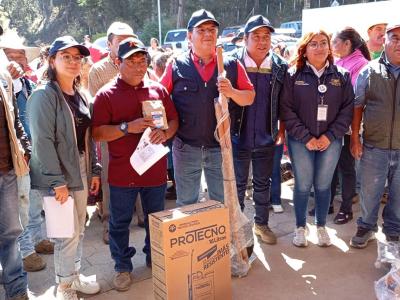 Cada kit está diseñado para facilitar el establecimiento de huertos familiares e incluye una bomba de aspersión de 16 litros para la aplicación de fertilizantes foliares y bioinsumos. Además, semillas de hortalizas de rápido crecimiento y alto valor nutritivo como acelga, cilantro, cebolla blanca, güicoy y pepino.
