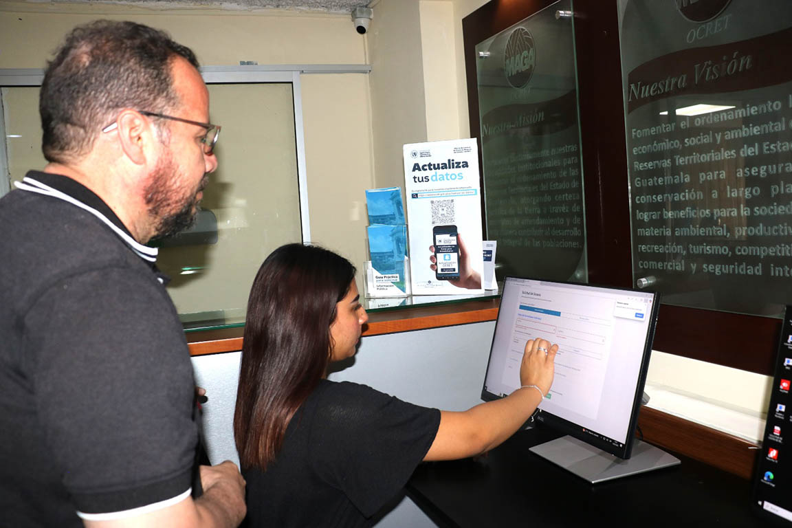 La legalización de terrenos dentro de las Áreas de Reservas Territoriales ahora es más fácil, porque puede gestionarse de forma remota y segura, gracias a la plataforma digital implementada por la Oficina de Control de Áreas de Reserva del Estado (OCRET) del Ministerio de Agricultura, Ganadería y Alimentación (MAGA), denominada Sistema Informático de Registros OCRET (SIRO).