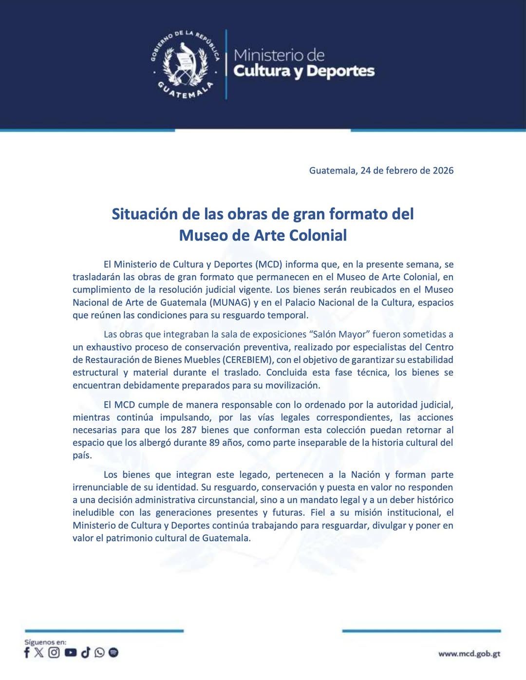 Situación de las obras de gran formato del Museo de Arte Colonial