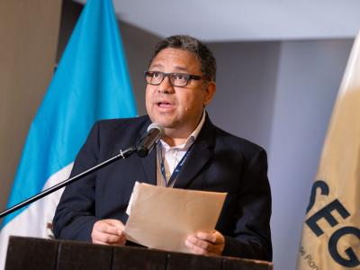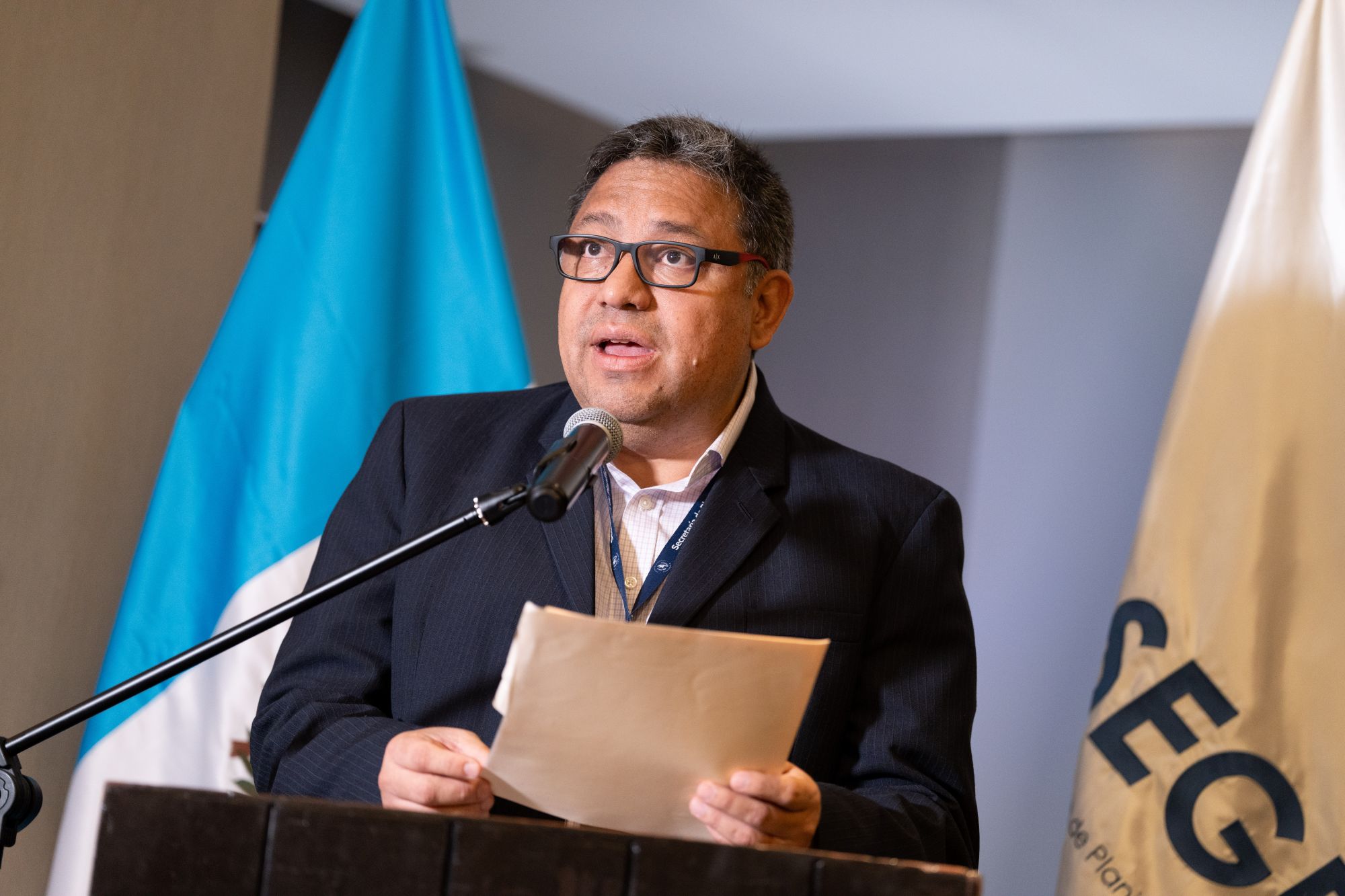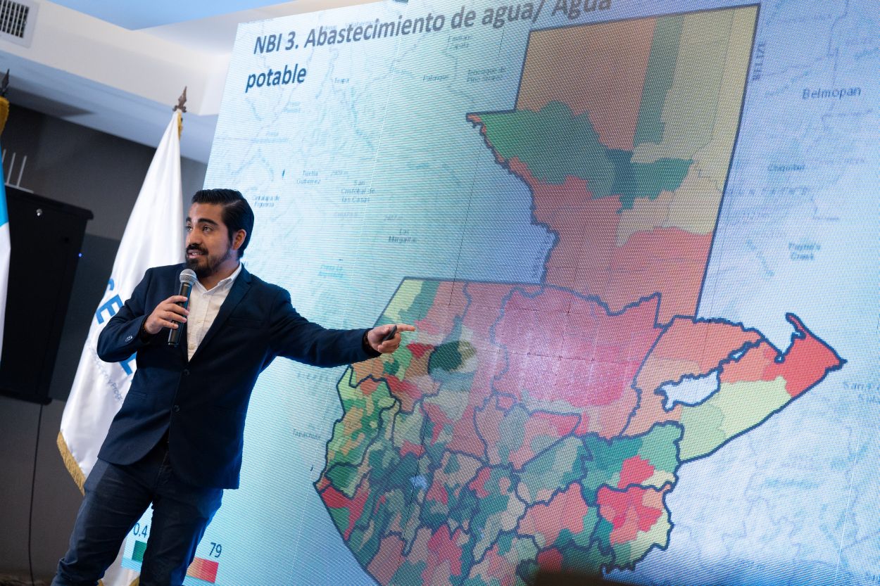 El director de Seguimiento y Evaluación del Desarrollo, Erick Chuquiej, expuso sobre los usos que las instituciones pueden darle a los Mapas de Pobreza 2023: