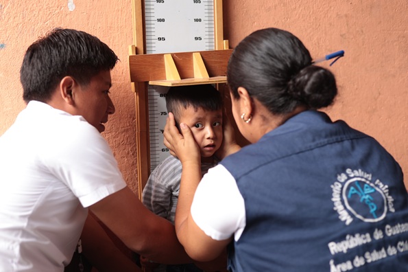 En la comunidad de Minas Arriba, San Juan Ermita, Chiquimula, Soledania Derosa García, de 24 años, llegó a los servicios de salud comunitarios con sus dos hijos para el control de peso y talla.