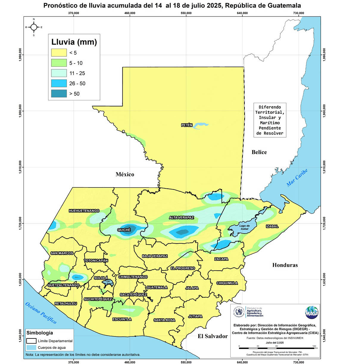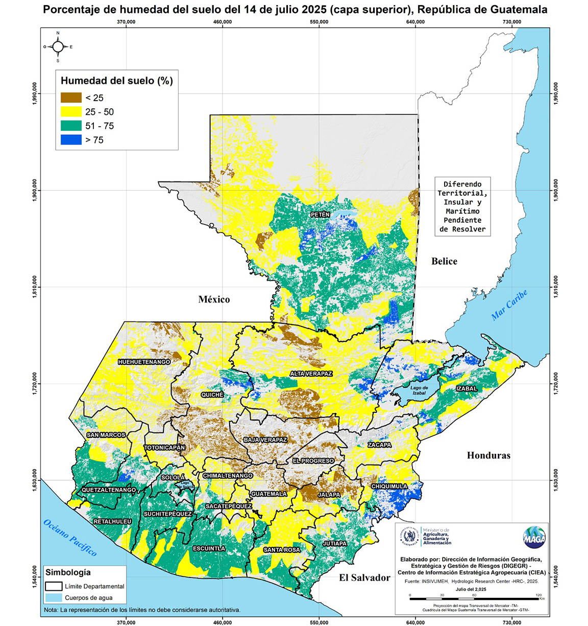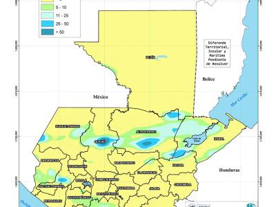 El análisis agrometeorológico realizado por el Ministerio de Agricultura, Ganadería y Alimentación (MAGA), con base en el pronóstico del Instituto Nacional de Sismología, Vulcanología, Meteorología e Hidrología (INSIVUMEH), hay una ausencia de lluvias en el territorio nacional, aunque se presentan lluvias marcadas, mínimas y esporádicas en algunas zonas.