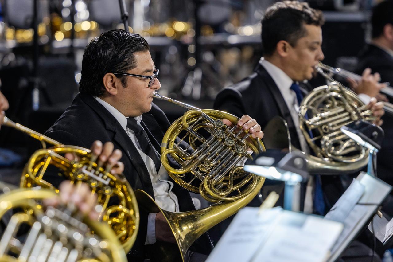 Las agrupaciones ofrecieron repertorios que combinaron tradición y virtuosismo. La Banda Sinfónica Marcial abrió la noche con obras como el Poema Sinfónico a la Revolución de Benigno Mejía Cruz, y la Orquesta Sinfónica Nacional rindió homenaje a la identidad sonora con piezas como Ferrocarril de los Altos de Domingo Bethancourt.