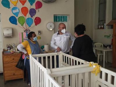 La Supervisión SBS, encabezada por el secretario Pancho Molina, llegó a la hora de la siesta de los más pequeños. El único despierto en el área de cunas era *Henry, quien al ver a los invitados se sorprendió y saludó con una sonrisa inmensa, es apenas un bebé.