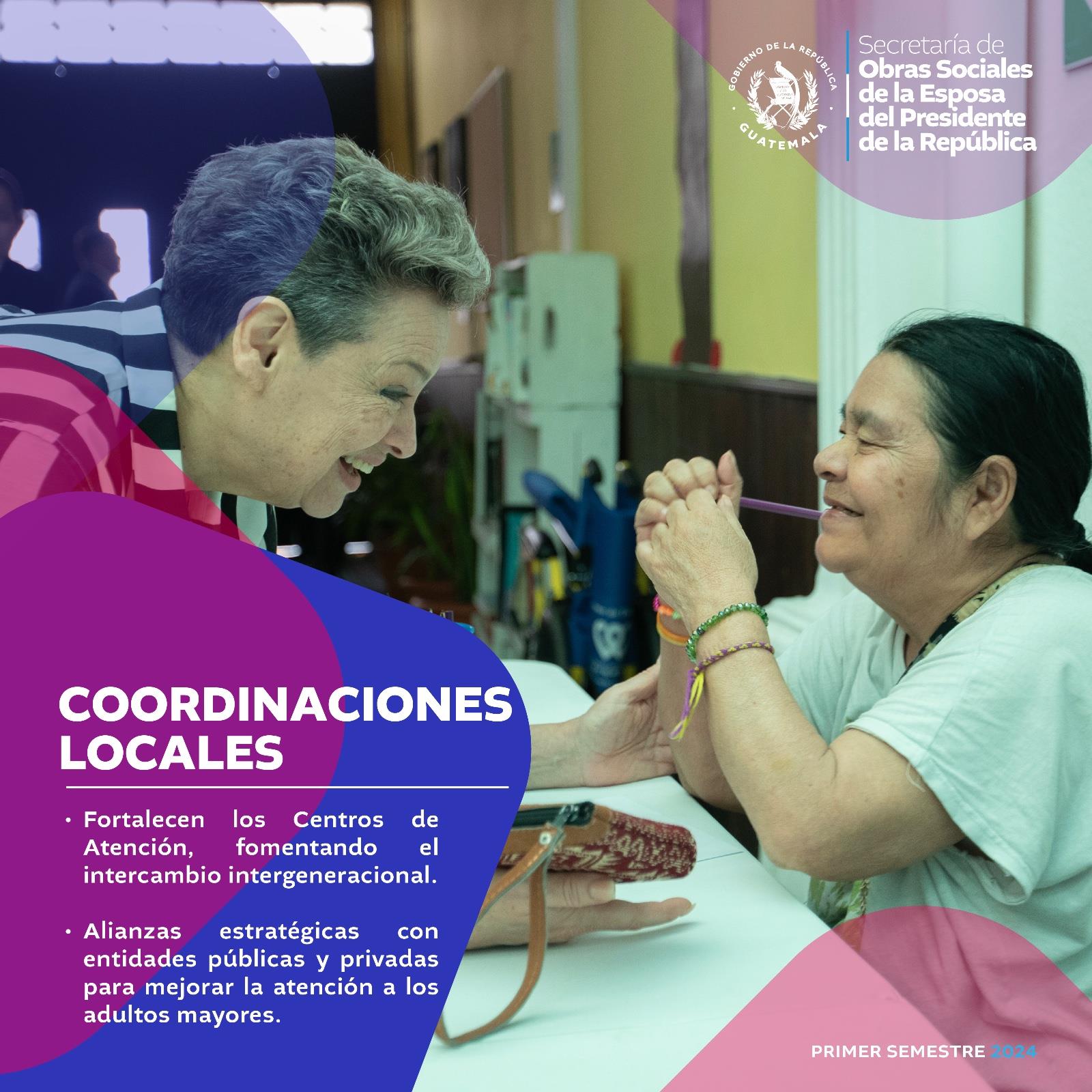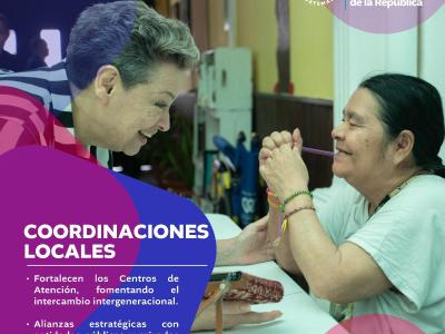 Nuestras coordinaciones locales juegan un papel clave en el fortalecimiento de los centros de atención. Estas coordinaciones fomentan el intercambio intergeneracional, enriqueciendo la experiencia de los adultos mayores y creando un entorno de apoyo mutuo.
