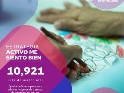 Implementamos esta estrategia con la distribución de 10,921 kits de materiales, beneficiando a los adultos mayores de los centros de atención diurna. Estos kits están diseñados para apoyar la atención en siete ejes clave, mejorando su bienestar general.