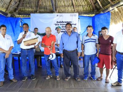 Durante dicho acto se hizo una entrega simbólica de propágulos de mangle a vecinos de la comunidad, con el fin de promover y conservar los ecosistemas que forman parte del mangle y otros recursos naturales.