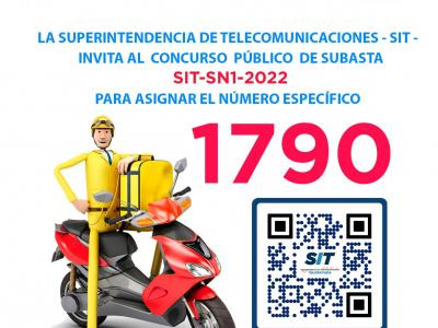 La Superintendencia de Telecomunicaciones, SIT, invitan al concurso público de subasta para asignar el número específico de cuatro dígitos 1790
