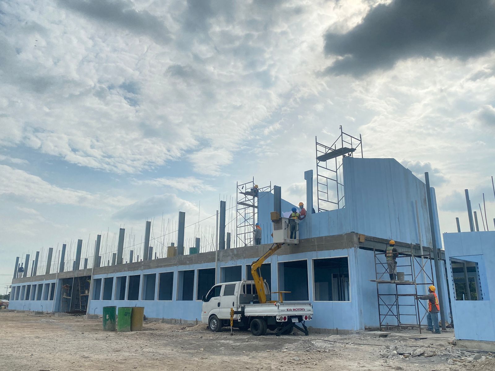 Guatemala, 17 de noviembre de 2021. Luego de dos meses, los trabajos de construcción de la escuela oficial Bicentenario en la colonia La Dignidad, Escuintla, presenta avances significativos en el área de primaria y de cocina.
