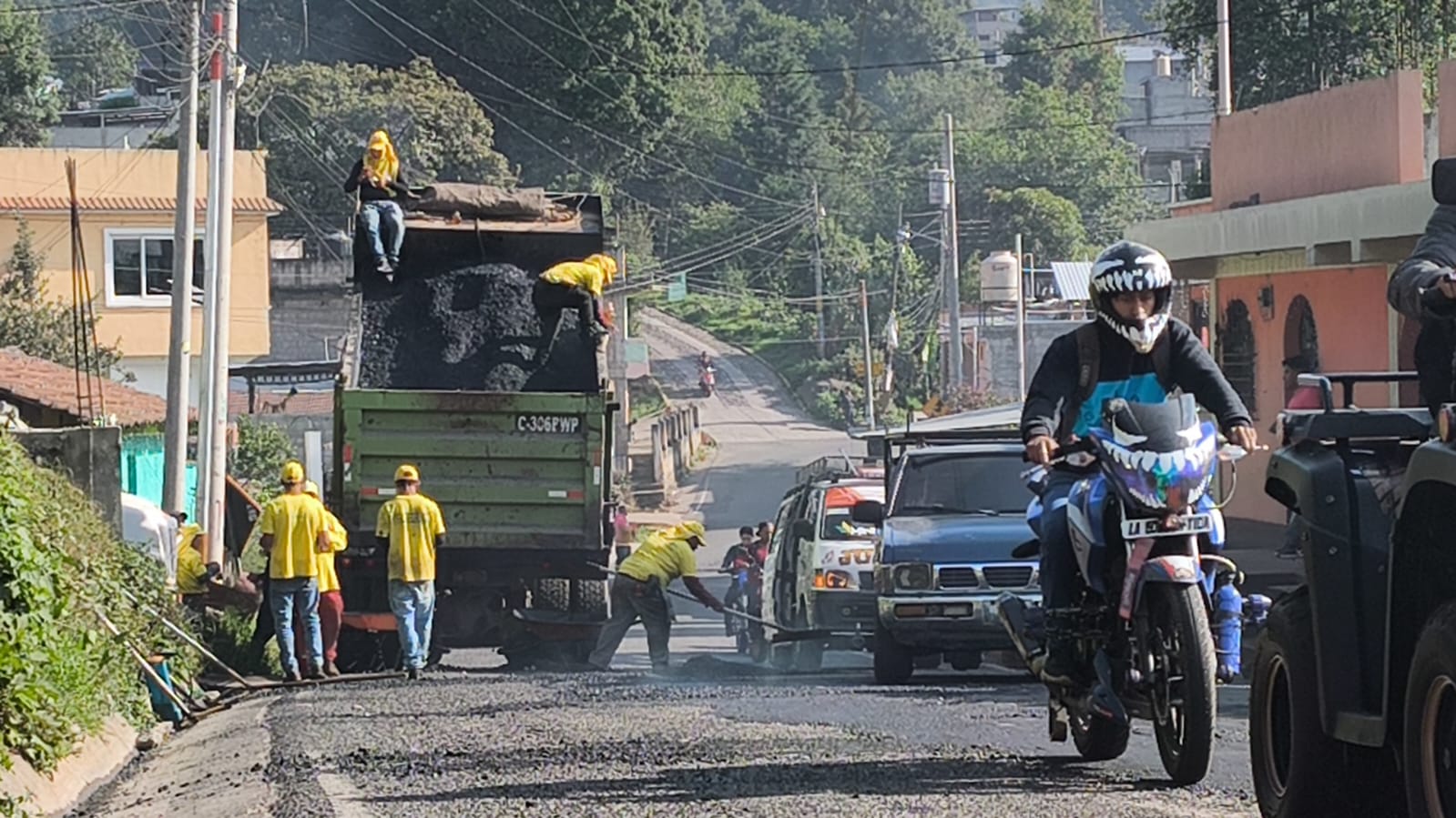 Según los acuerdos establecidos con altas autoridades del Ministerio de Comunicaciones, Infraestructura y Vivienda (CIV) se realiza un bacheo muy ligero para mitigar los daños y la exigencia de la población, previo a la adjudicación para realizar el recapeo completo que cubrirá el tramo carretero desde la cabecera departamental hacia el municipio de Tacana San Marcos.
