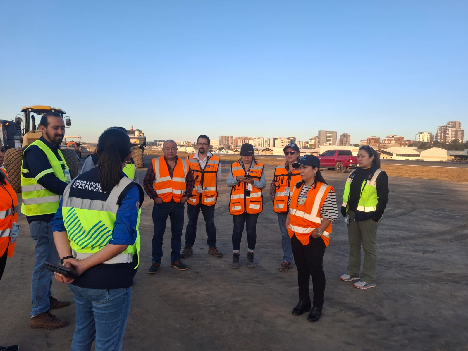 Durante la inspección, encabezada por la coordinadora ejecutiva del Fondo Social de Solidaridad, Arq. Andrea Beltetón, se contó con la participación de personal de la Dirección General de Aeronáutica Civil (DGAC) y representantes de la empresa encargada del proyecto.