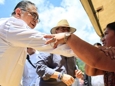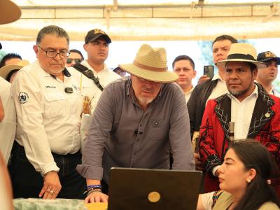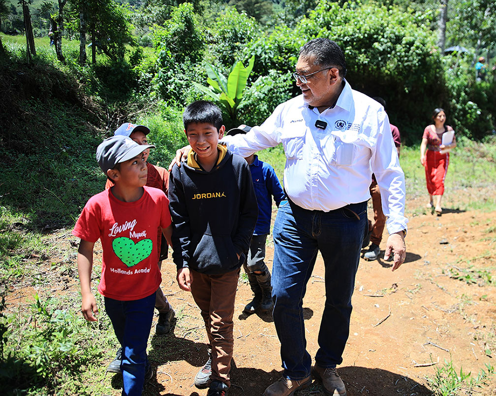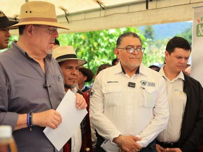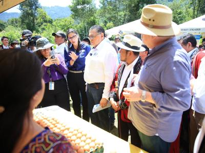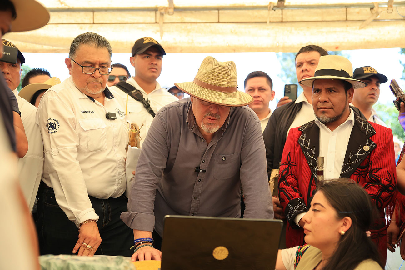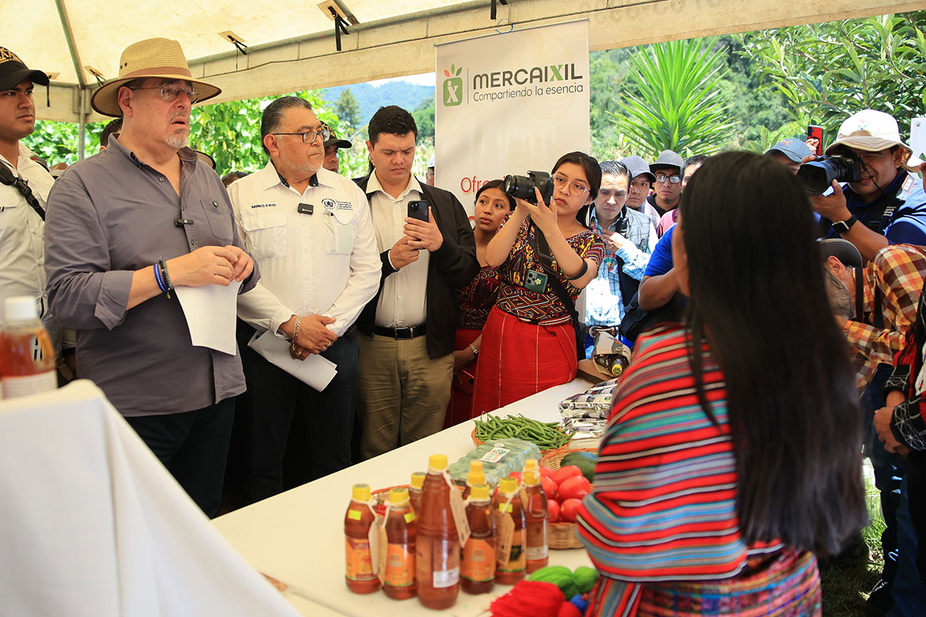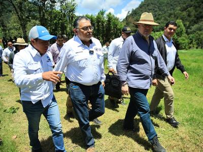 El presidente de la República, Bernardo Arévalo y el ministro de Agricultura, Ganadería y Alimentación, Mynor Estrada, acompañados por la representante adjunta de FAO en Guatemala, Luisa Samayoa, visitaron la aldea Xexuxcap, municipio de Santa María Nebaj, Quiché, para conocer y apreciar los avances de proyectos enfocados en la seguridad alimentaria y el desarrollo rural.