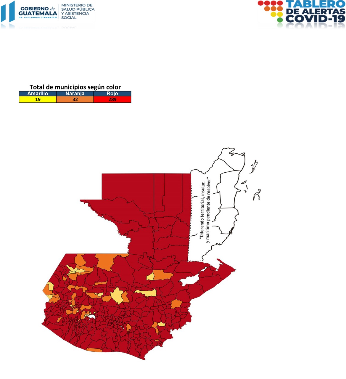 Este sábado 21 de agosto, el Ministerio de Salud Pública y Asistencia Social -MSPAS- actualizó el Tablero de Alertas Sanitarias COVID-19; para los próximos 14 días se establece 289 municipios en alerta roja, 32 en naranja y 19 en amarilla.