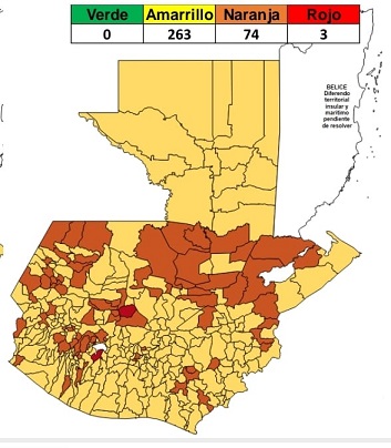 El Ministerio de Salud Pública y Asistencia Social -MSPAS- actualizó el Tablero de Alertas Sanitarias COVID-19; para los próximos 14 días se establece 74 municipios en alerta naranja y 263 en alerta amarilla y 3 en alerta roja.