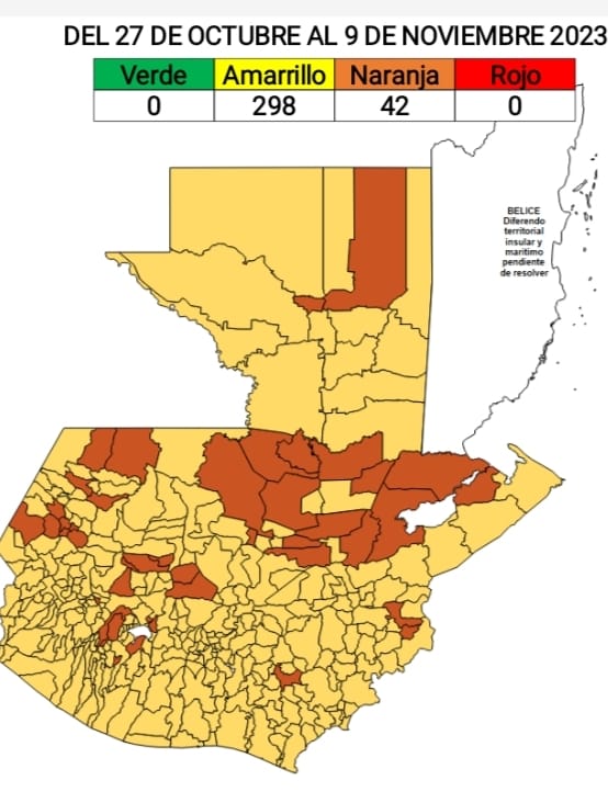 El Ministerio de Salud Pública y Asistencia Social -MSPAS- actualizó el Tablero de Alertas Sanitarias COVID-19; para los próximos 14 días se establece 298 en alerta amarilla y 42 municipios en alerta naranja.