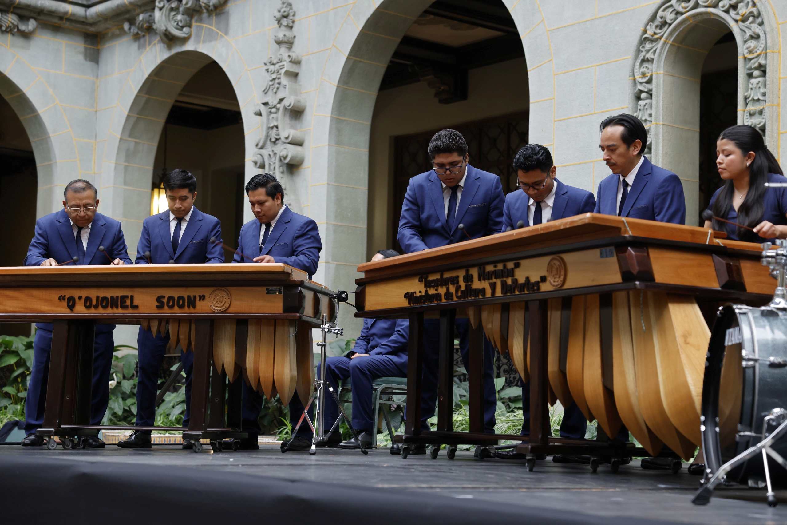 La Marimba Q’ojonel Soon, bajo la dirección musical del maestro Maximiliano Boche, deleitó a guatemaltecos y visitantes extranjeros en el Patio de la Vida. La agrupación interpretó un programa de 14 piezas, que incluyó obras como “Mi Lindo Cauqué”, de Víctor Hugo Maldonado; “Noche de Luna en las Ruinas”, de Mariano Valverde; y “Mi Bella Guatemala”, de Germán Alcántara.